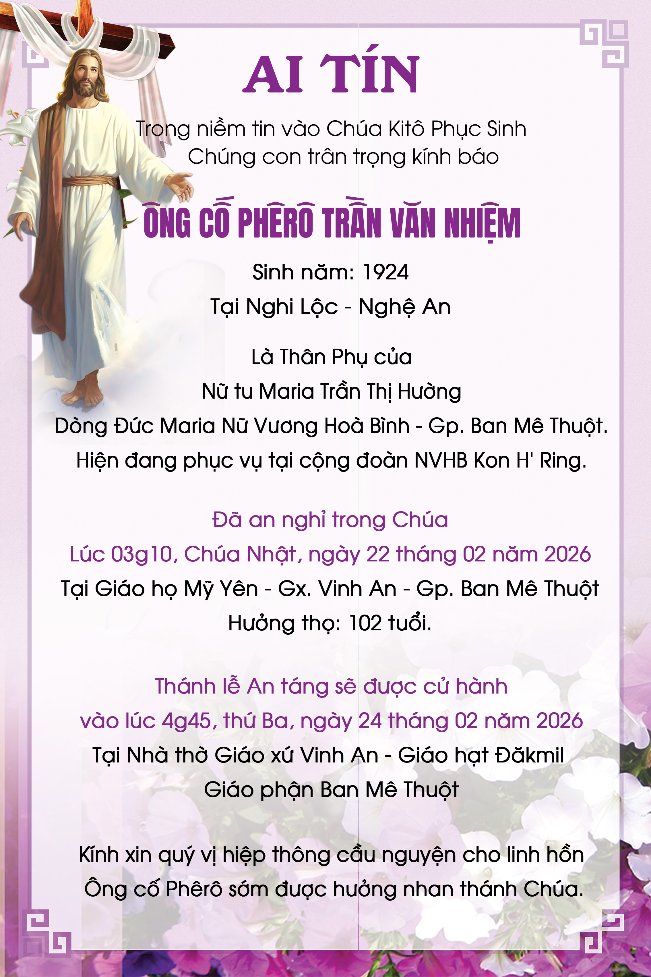 Ai tín Ông Cố Phêrô Trần Văn Nhiệm - Thân Phụ của nữ tu Maria Trần Thị Hường