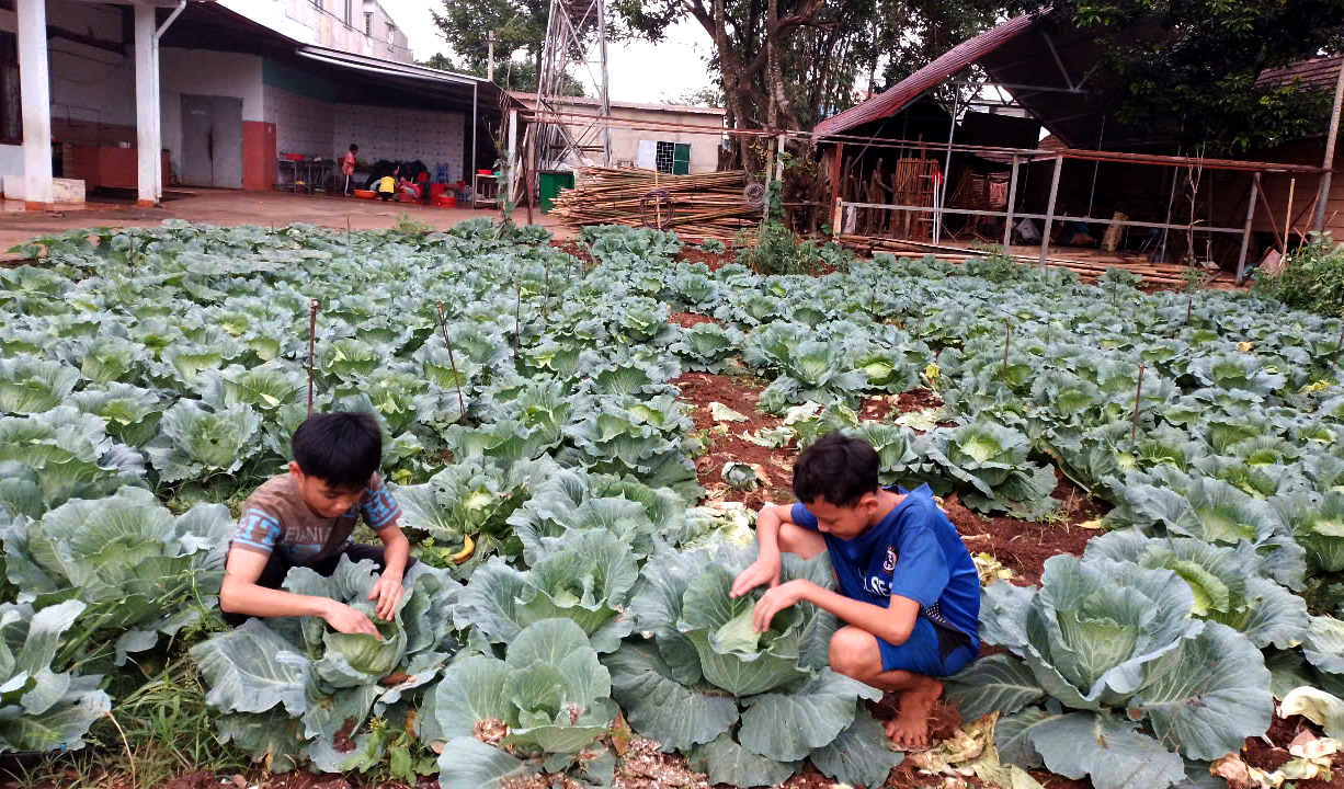 Có những bóng dáng các nữ tu len lỏi trong sân đang cùng các em chơi bóng rổ, có sơ đang cùng các em bắt sâu …Sơ Vũ Thị Đoan Trang là sơ Phụ Trách cộng đoàn lưu trú sắc tộc Têrêxa với dáng người nhỏ nhắn, gương mặt phúc hậu, nụ cuời luôn nở trên môi, chia sẻ rằng“ Ở gia đình lo cho một hai đứa con đã mệt, ở đây hơn 200 em đủ các sắc tộc, các vùng miền, độ tuổi, đủ loại tính tình…Nên đòi hỏi tình yêu thương sự kiên nhẫn rất nhiều. Với 270 em đang tuổi lớn, ăn như hổ pháp thì thật là một thách đố lớn cho các sơ. Sơ Đoan Trang vừa cười vừa nói “Một tạ gạo trong một ngày dường như chẳng thấm vào đâu”. Nên các sơ cùng các em trồng thêm rau cỏ để bữa cơm thêm món… Cùng với sự chạy vạy của các sơ, còn có biết bao tấm lòng hảo tâm chia sẻ để lo cho các em. Với một niềm tín thác vào Chúa, sự ưu tư cho “người em thứ” không làm cho các sơ chùn bước, nhưng luôn mở rộng cánh cửa trái tim để tiếp đón các em, vì mỗi em được gửi đến đây là một hy vọng lớn cho các quý sơ vì những hạt mầm các sơ đang vất vả dày công vun xới nơi những mảnh đất tốt và đầy đủ dưỡng chất cho một vụ mùa bội thu hôm nay, có thể chắp cánh ước mơ cho các em và là những hạt nhân cho các vùng truyền giáo nơi các em sinh sống mai ngày.