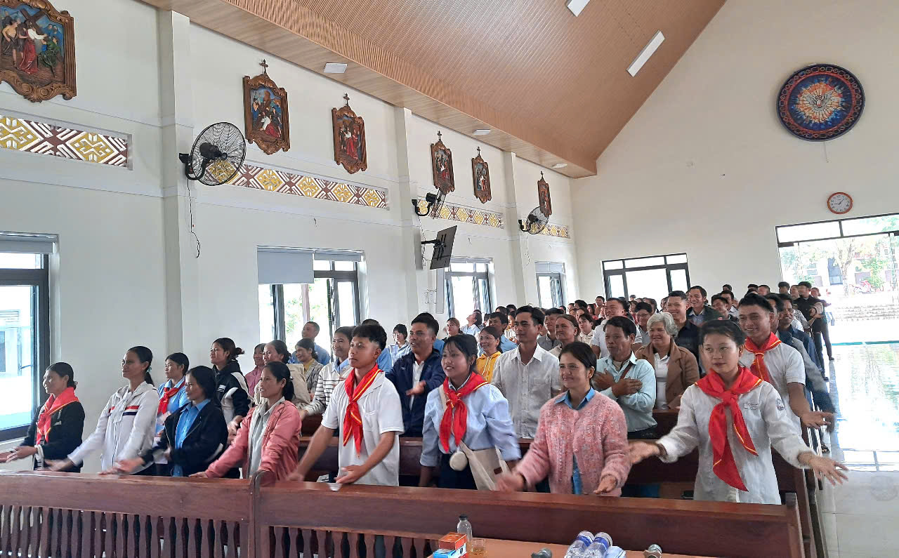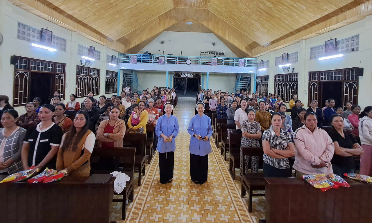 Nhận lời mời của cha Marcô Trần Quý Phương Linh - Phó Ban Giáo lý Giáo phận Kontum, sáng thứ bảy, ngày 29.3.2025, tại nhà thờ giáo xứ Đăk Mút, chị em đã gặp gỡ, giao lưu, chia sẻ và làm phút hồi tâm cho khoảng trên 200 giáo lý viên, hạt Đăk Hà với chủ đề: “Thay đổi cái nhìn để thi hành sứ vụ giáo lý viên theo gương Chúa Giêsu”.