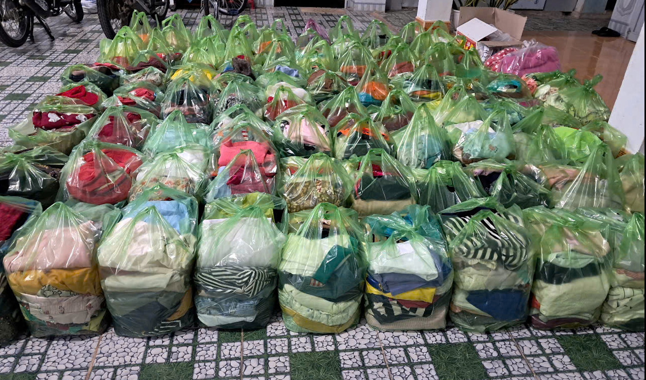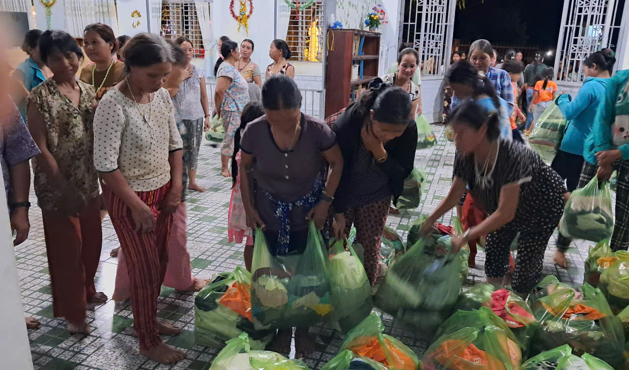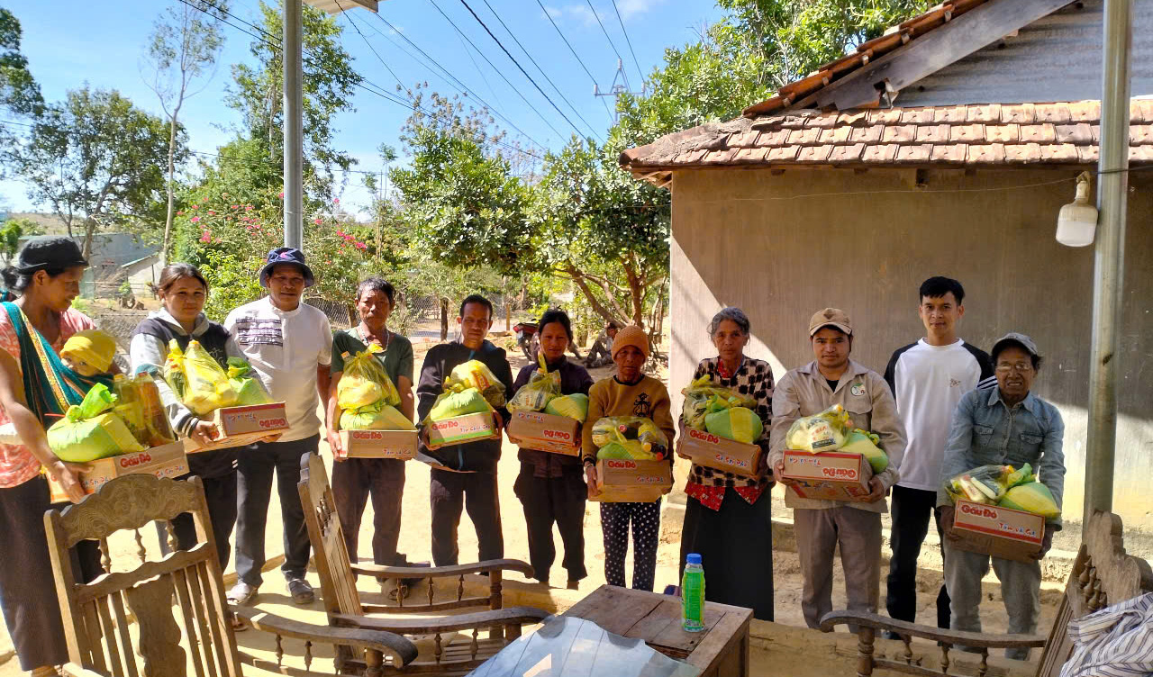 Được sự tài trợ của cha Phêrô Nguyễn Vân Đông đang nghỉ hưu tại nhà hưu dưỡng TGM Kontum và một vài ân nhân, chị em đã chia sẻ cho các gia đình nghèo trong và ngoài giáo xứ khoảng trên 100 bao áo quần cũ và mới, 400 gói bánh cho các em thiếu nhi, 50 phần quà cho người già và 250 phần quà cho các thành viên GĐNVHBTT.