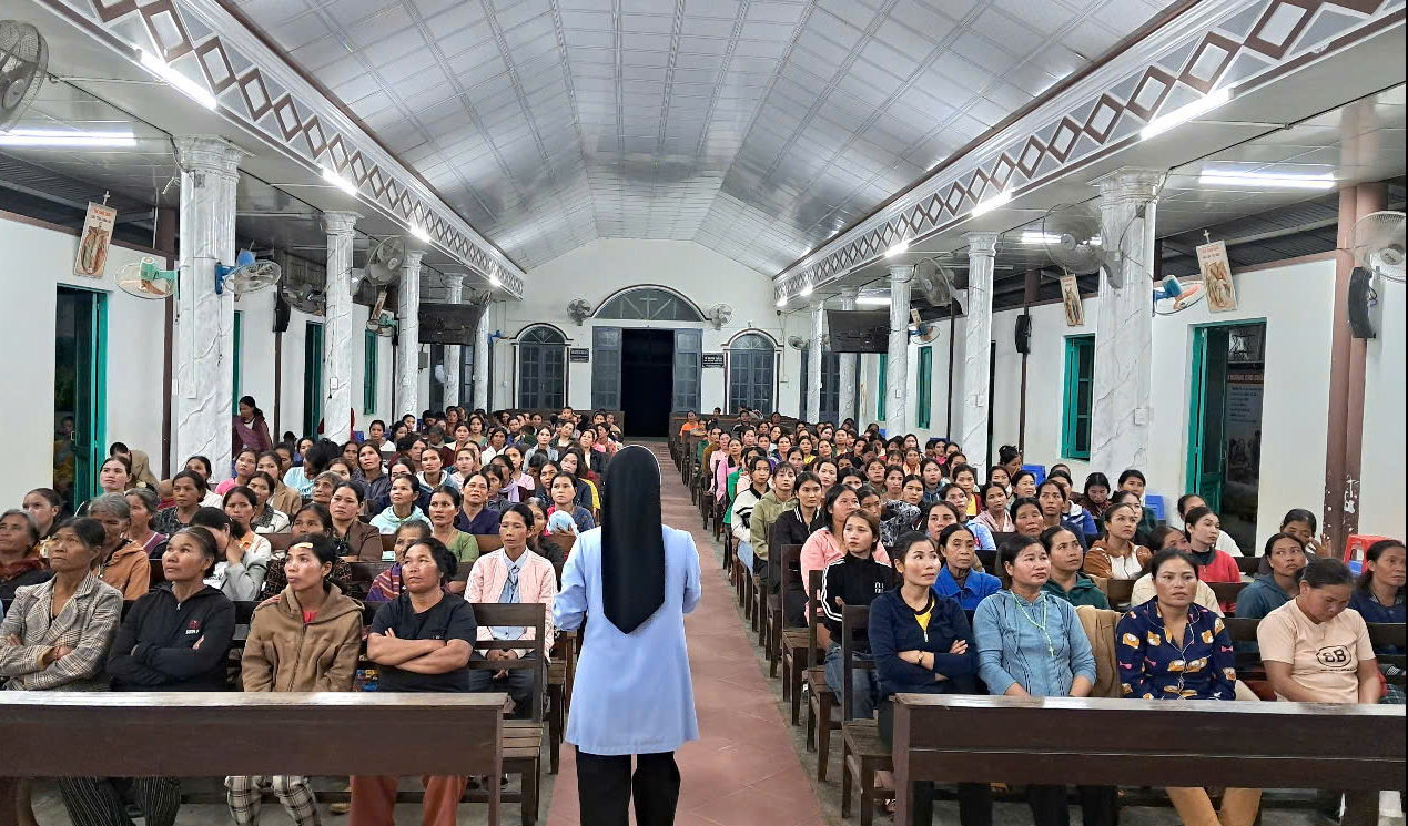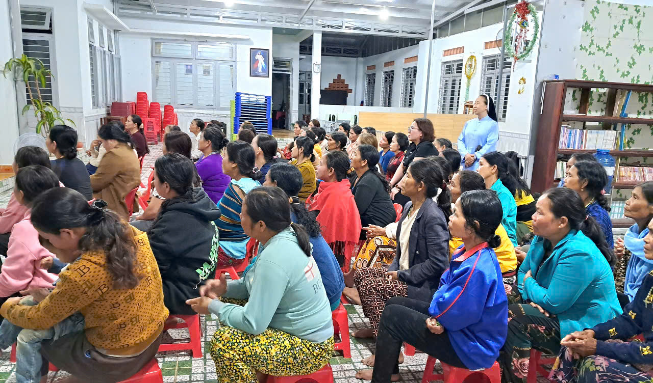 - Tối ngày 08 và 09.3. 2025, chị TCV M. Anna Hoàng Thị Bạch Tuyết, Đặc trách GĐNVHBTT đã đến giáo xứ Kroong và giáo xứ Đăk Tiêng Kơtu, gặp gỡ chia sẻ về cầu nguyện với Lời Chúa cho trên 300 thành viên. Mọi người tích cực tham dự với tinh thần nhiệt tình học hỏi.