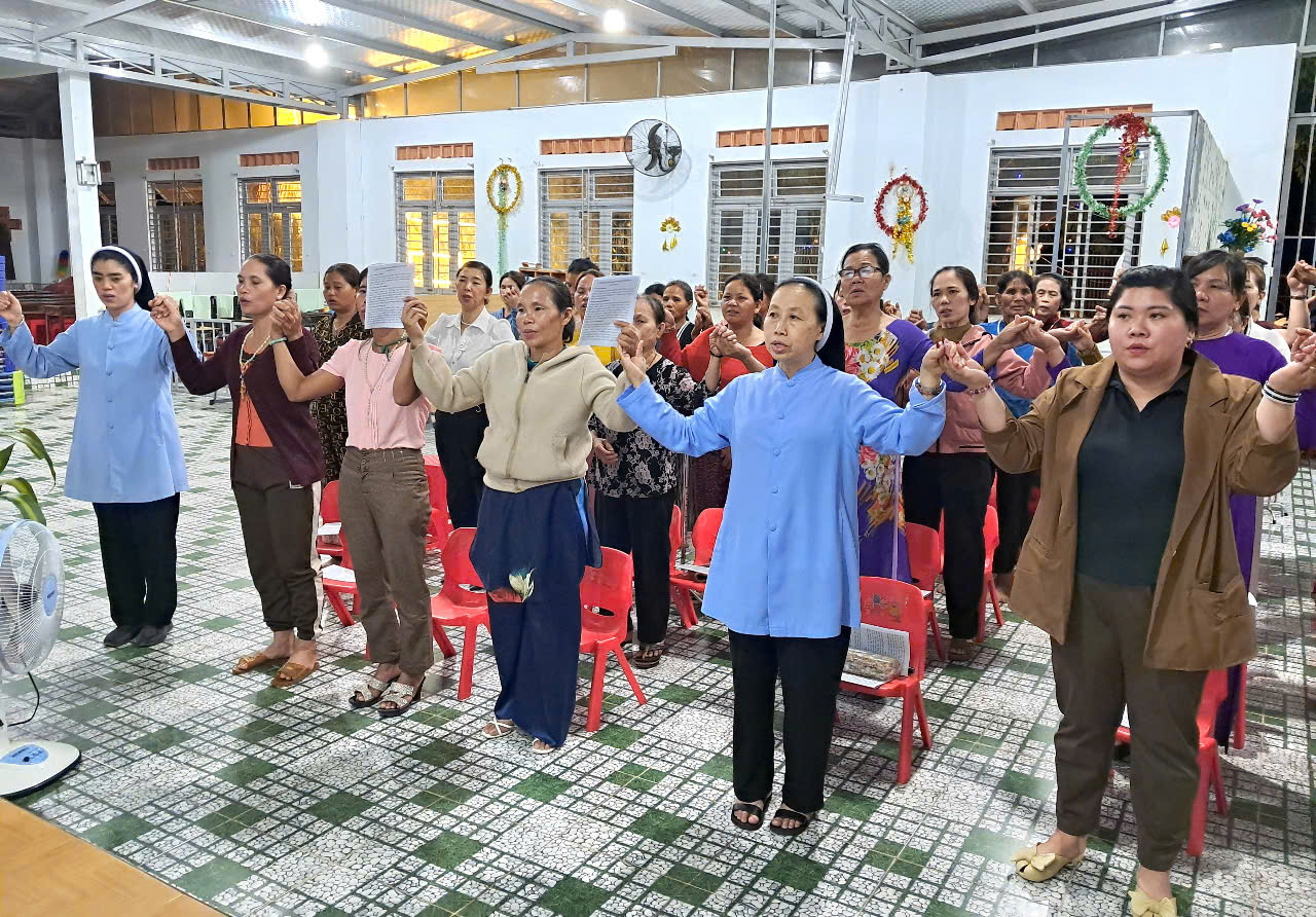 - Để giúp cộng đoàn tiếp tục sốt sắng sống tinh thần mùa Chay chuẩn bị mừng Đại Lễ Phục Sinh, vào lúc17g00 thứ hai, ngày 24.3.2025, chị em đã tổ chức hồi tâm, cầu nguyện cho 3 nhóm GĐNVHBTT tại nhà thờ giáo xứ Kroong.