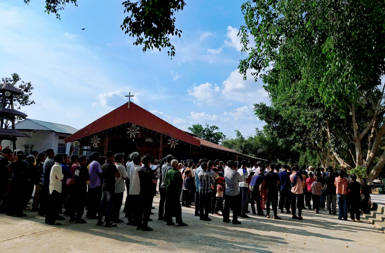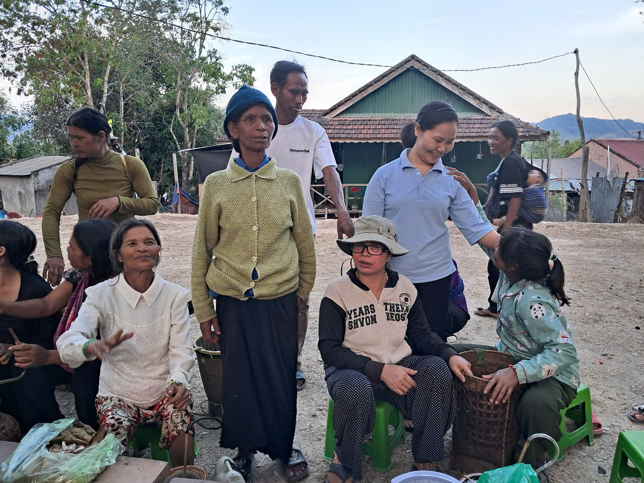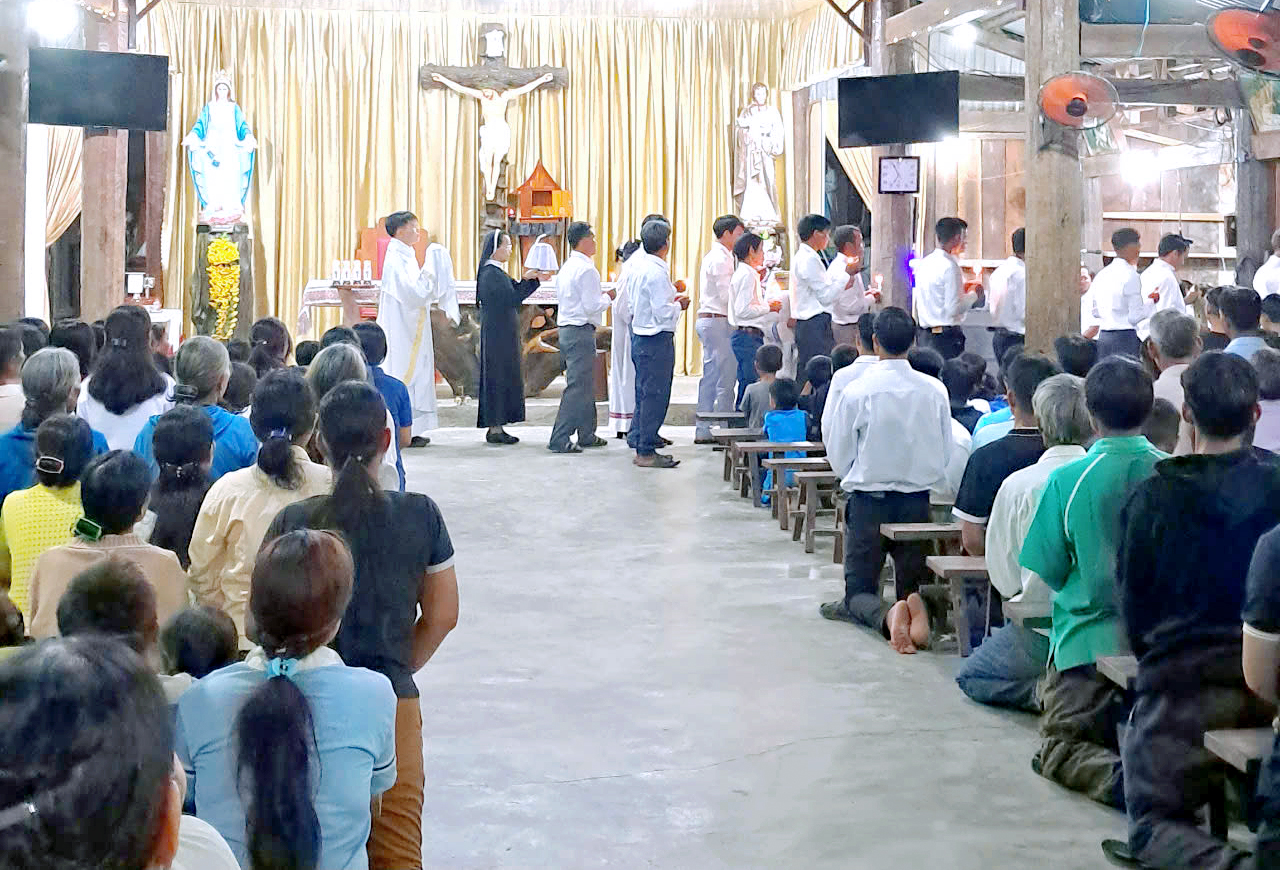 Tuần Thánh 2025, theo lời mời của cha xứ, giáo xứ DE SƠMEY, một giáo xứ cách cộng đoàn Kroong hơn 50 km, về hướng Gia Lai, có hai chị đến đồng hành và hỗ trợ các chú Giáo phu. Theo truyền thống, từ thứ tư đến thứ bảy Tuần Thánh các chú Giáo phu đến phục vụ tại nhà xứ trọn ngày, để giúp cha chuẩn bị các nghi thức Tam Nhật Thánh và Đại lễ Phục Sinh. Năm nay cha giao công việc này cho hai chị em, hướng dẫn khoảng 15 chú từ việc dọn vệ sinh, sắp xếp phòng thánh, chuẩn bị vật dụng, làm nhà Tạm phụ, vệ sinh trong ngoài, đến ẩm thực…