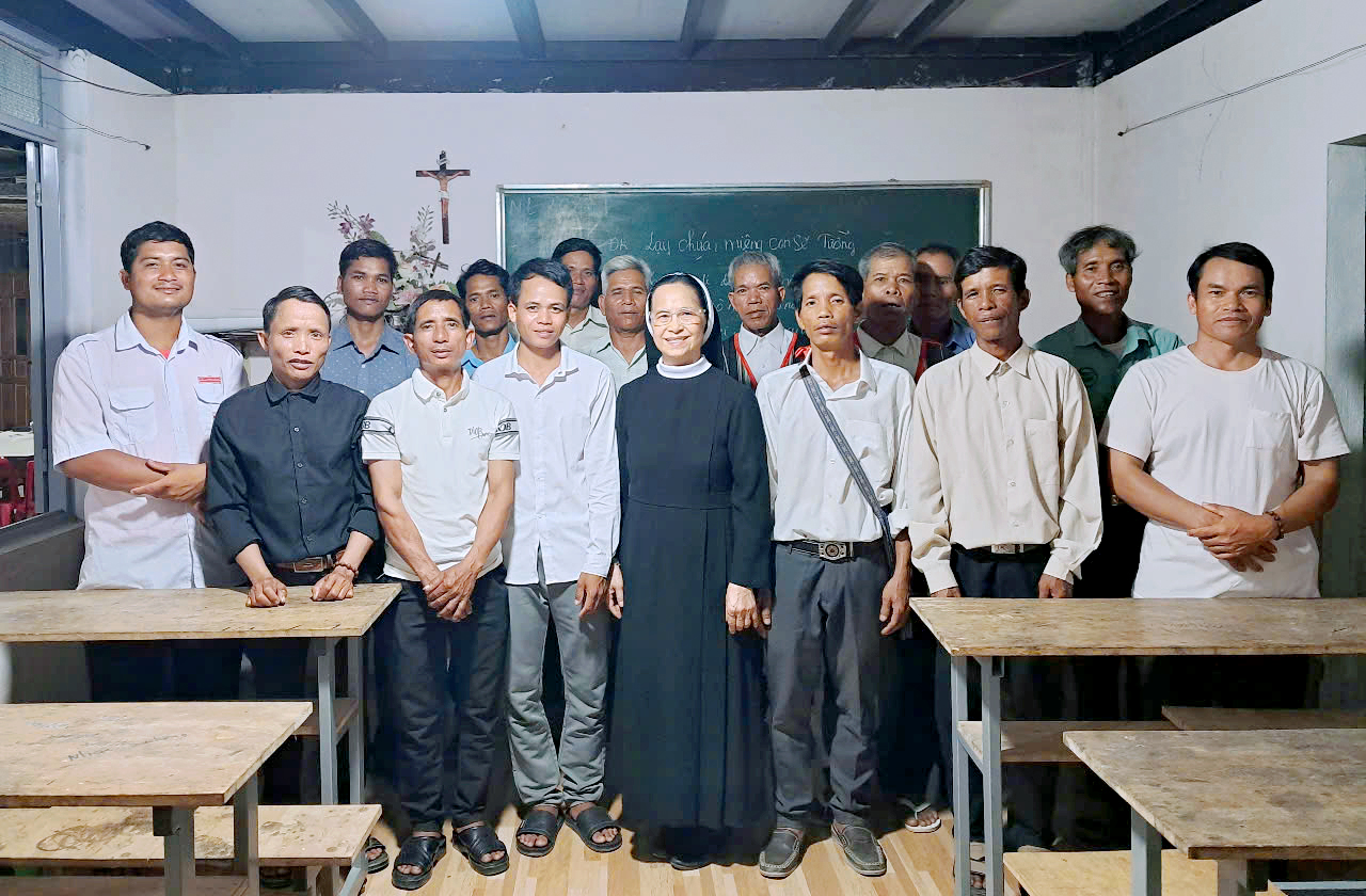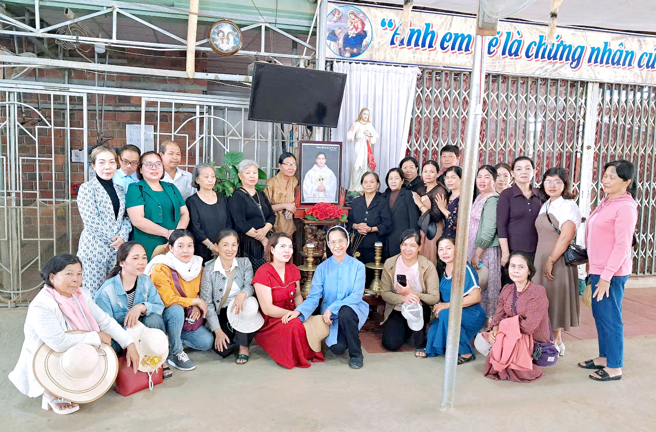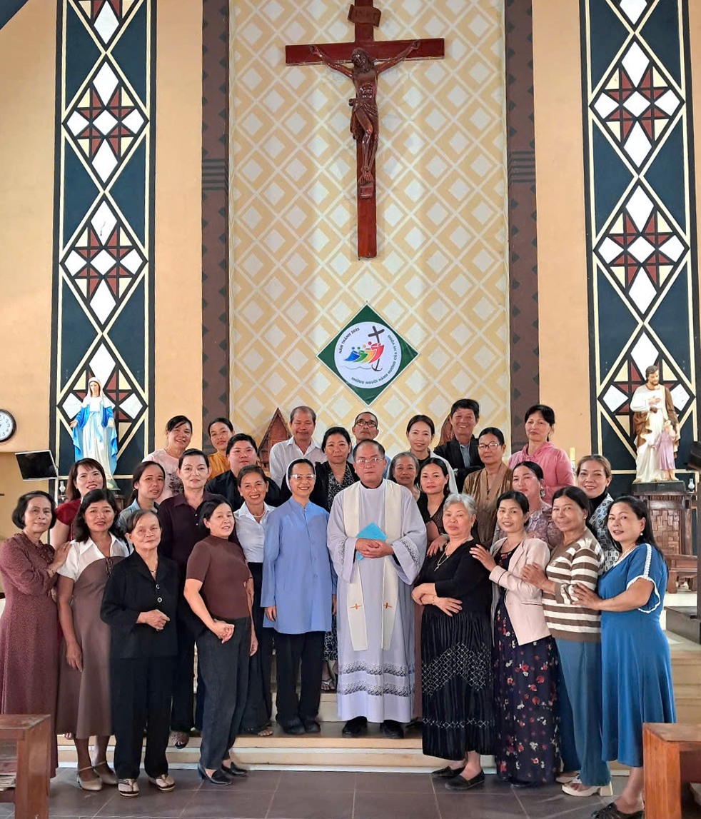 Từ ngày 29 đến 30 tháng 4, chị Maria Trần Thị Thúy Nga - trưởng ban LBTM của Dòng, và chị Trần Thị Thùy Trang - thành viên, đã đến thăm giáo xứ De Sơmei, nơi hai chị em cộng đoàn Kroong, từ tháng 2.2025, mỗi tháng một tuần đã đến để đồng hành, hướng dẫn một số công việc cho các chú Giáo phu, Giáo lý viên…theo sắp xếp của cha xứ. Các chị cũng trao đổi với cha xứ để tìm hiểu thêm và cụ thể về nhu cầu truyền giáo tại vùng chị em mới hiện diện này để có thể hỗ trợ phù hợp và hiệu quả. Thời gian ở tại giáo xứ tuy ngắn nhưng hai chị đã nhiệt tình chia sẻ công việc trong ngày lễ bổn mạng giáo xứ; đồng thời cũng là ngày Đức Cha Giáo phận đến ban Bí tích Thêm sức cho gần 70 em thiếu nhi. Các chị cũng dành thời gian thăm viếng một số gia đình trong giáo xứ. Chiều ngày 01.5.2025, hai chị về thăm và làm việc tại cộng đoàn Gia Le.