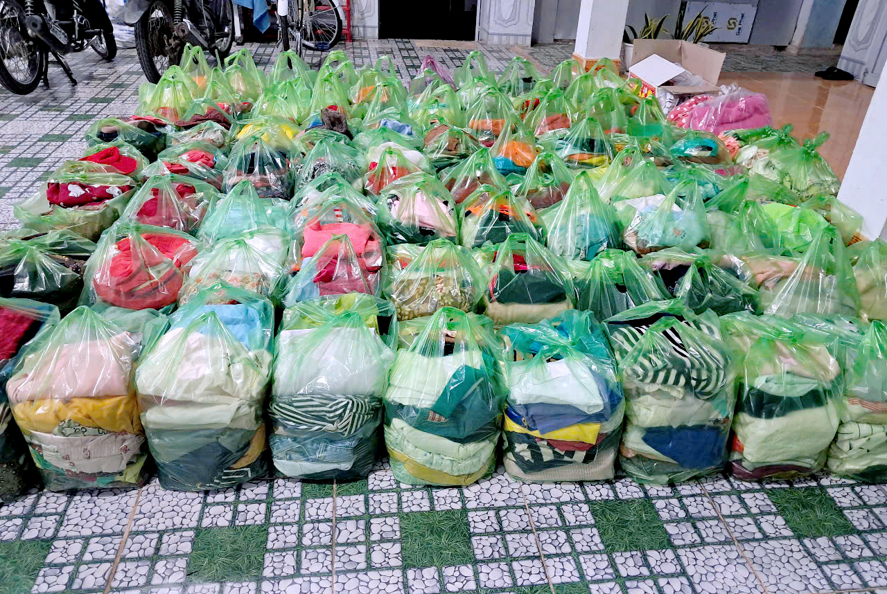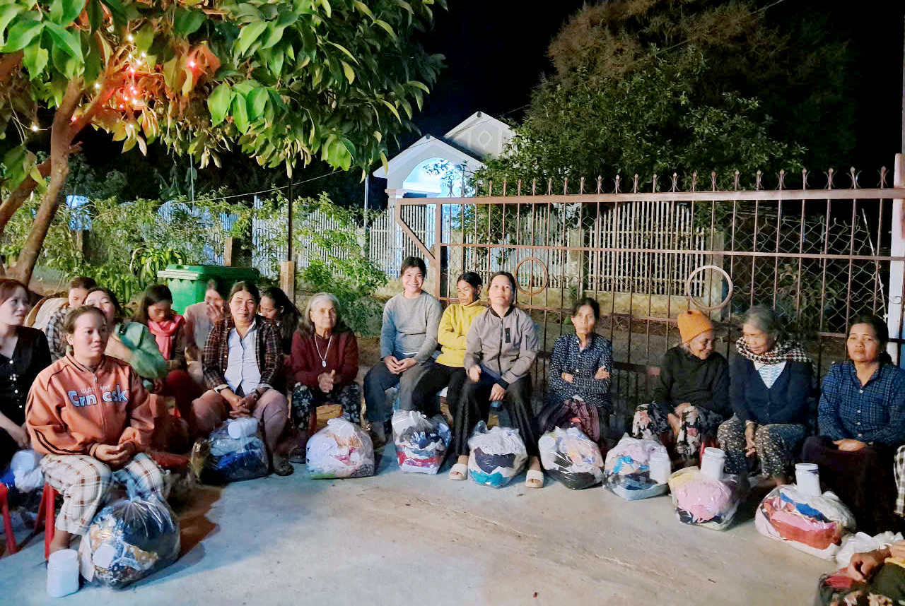 Được sự hỗ trợ của cha Phêrô Nguyễn Vân Đông, nhà hưu dưỡng TGM Kontum và một vài ân nhân, chị em đã chia sẻ cho khoảng 450 các mẹ Dân tộc thuộc thành viên GĐNVHBTT, tại 2 giáo xứ Kroong và Đăk Tiêng Kơtu và một vài làng nghèo ở xa, ngoài giáo xứ khoảng trên 1000 gói áo quần cũ và mới đã chia sẵn, 20 bao mì rời chưa đóng gói, 250 gói bánh cho các em thiếu nhi.