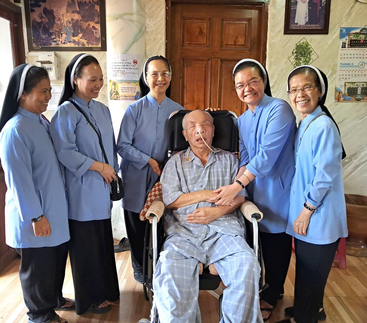 Trong tâm tình biết ơn, kính hiếu, sáng thứ bảy, ngày 25.4, tất cả chị em cộng đoàn đã đến thăm Đức Cha, hiện ngài đang nghỉ dưỡng bệnh tại giáo xứ Hoàng Yên - Gia Lai …Tuy nói không rõ nhưng ngài nghe và hiểu được tâm tình biết ơn của chị em khi nhắc lại công ơn và sự quan tâm Đức Cha dành cho cộng đoàn trong những ngày đầu thành lập với nhiều khó khăn. Chị em cảm ơn và hứa sẽ nhớ cầu nguyện cho ngài. Đức cha xúc động đáp lại bằng những ngôn từ hơi khó nghe, nhưng tin rằng ngài đã đón nhận tấm lòng của chị em. Nhân chuyến đi này, chị em cũng đến hành hương nhà thờ Plơi Chuet để lãnh ơn Toàn xá Năm Thánh.