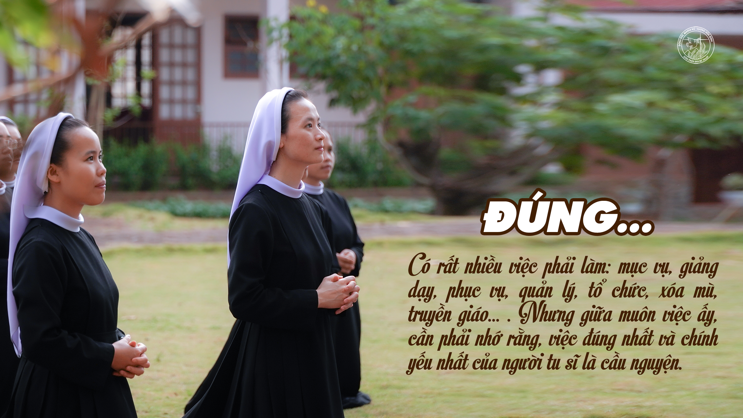 Trong đời sống tu trì cũng vậy. Có rất nhiều việc phải làm: mục vụ, giảng dạy, phục vụ, quản lý, tổ chức, xóa mù, truyền giáo… Tất cả đều tốt và cần thiết. Nhưng giữa muôn việc ấy, cần phải nhớ rằng, việc đúng nhất và chính yếu nhất của người tu sĩ là cầu nguyện.