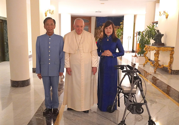 Đức Thánh Cha Phanxicô tiếp Hiệp sĩ Gioan Baotixita Lê Đức Thịnh cùng phu nhân Anna Nguyễn Thị Kim Yến, ngày 21.12.2022 tại Vatican