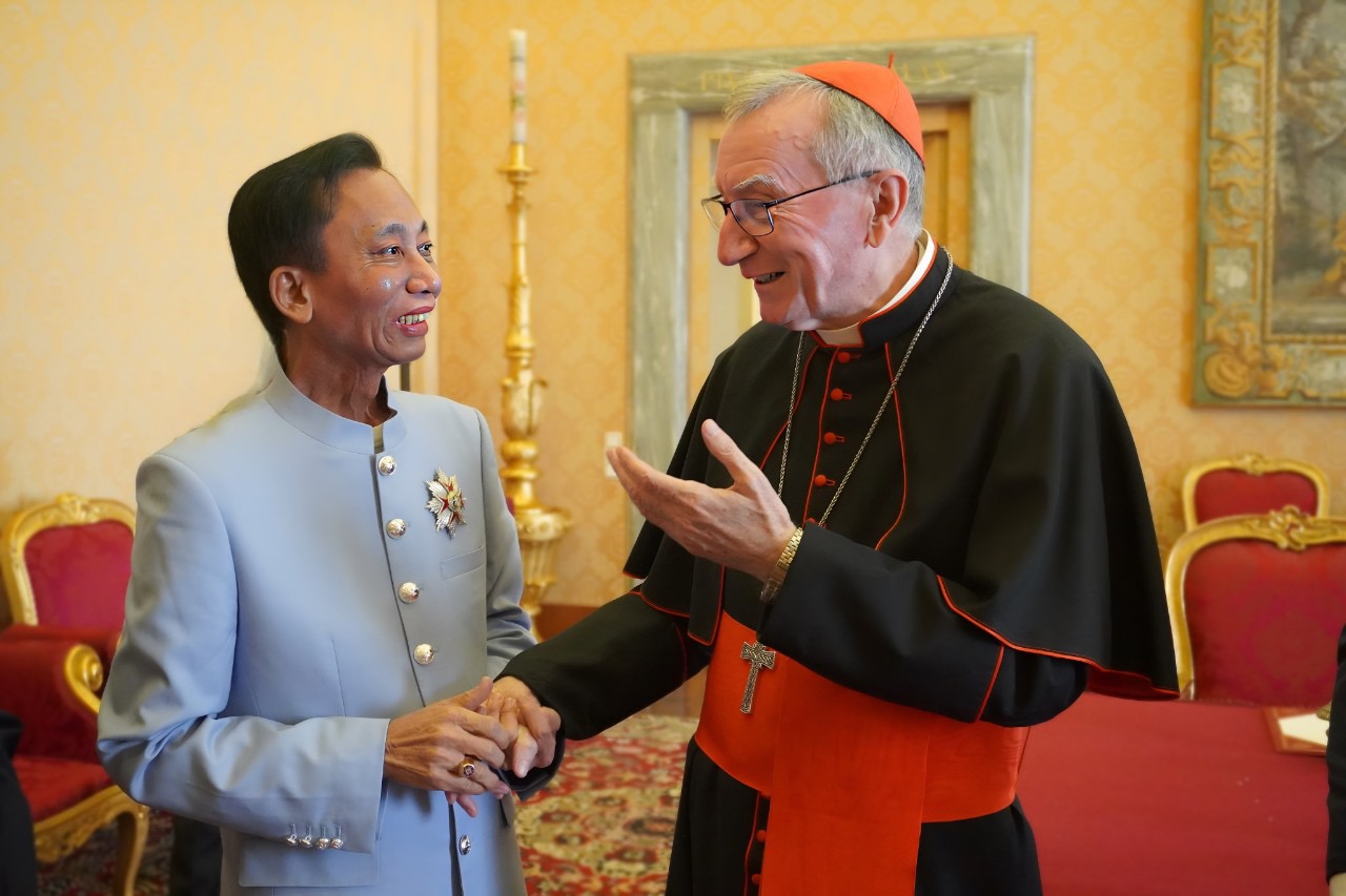 Một cuộc gặp gỡ giữa Hiệp sĩ Đại Thánh giá Gioan Baotixita Lê Đức Thịnh với Đức Hồng y Quốc vụ khanh Pietro Parolin năm 2022