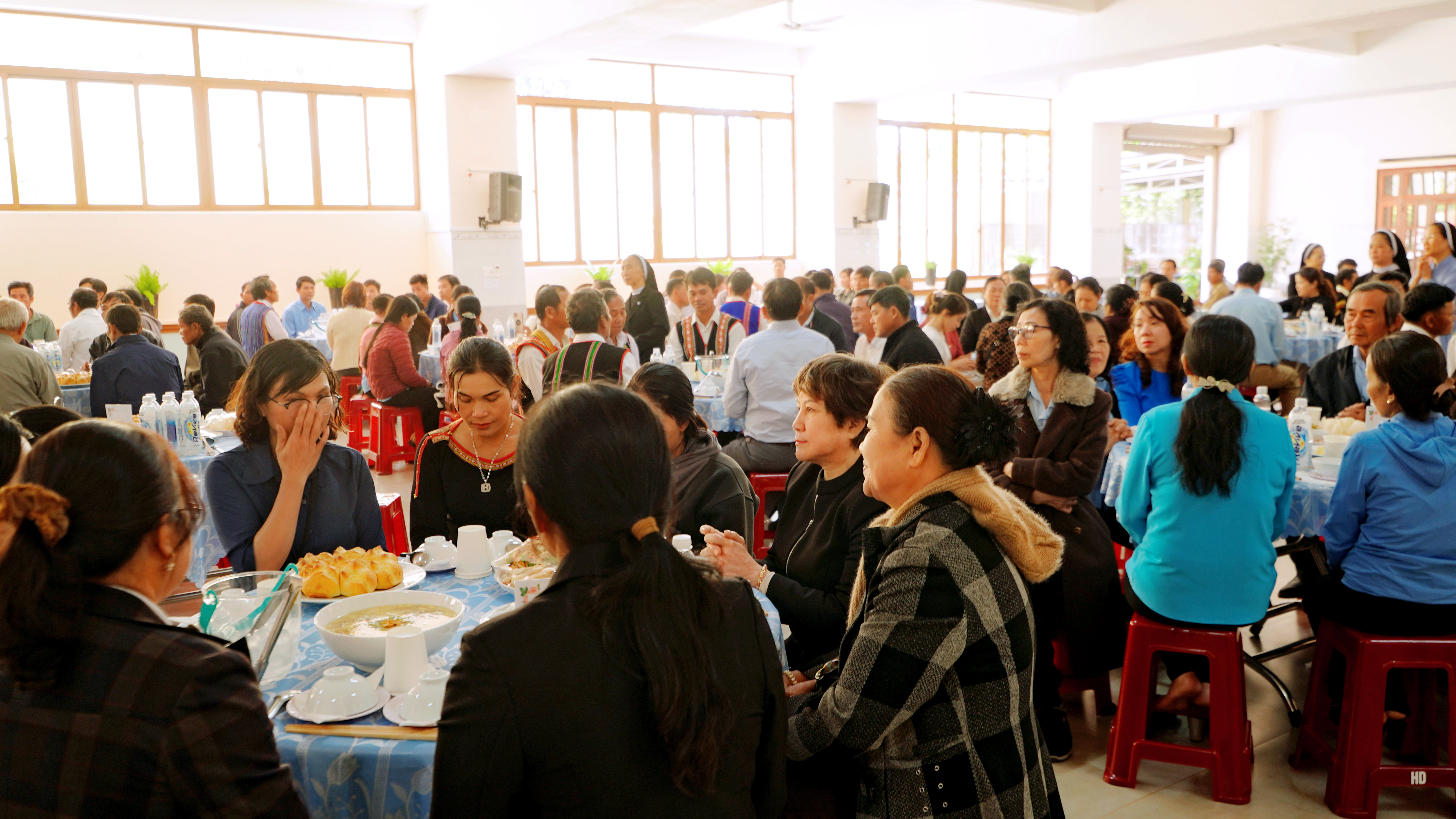 Sau khi tham dự tiệc Lời Chúa và Thánh Thể, các tham dự viên cùng chia sẻ niềm vui trong bữa cơm huynh đệ thân tình.