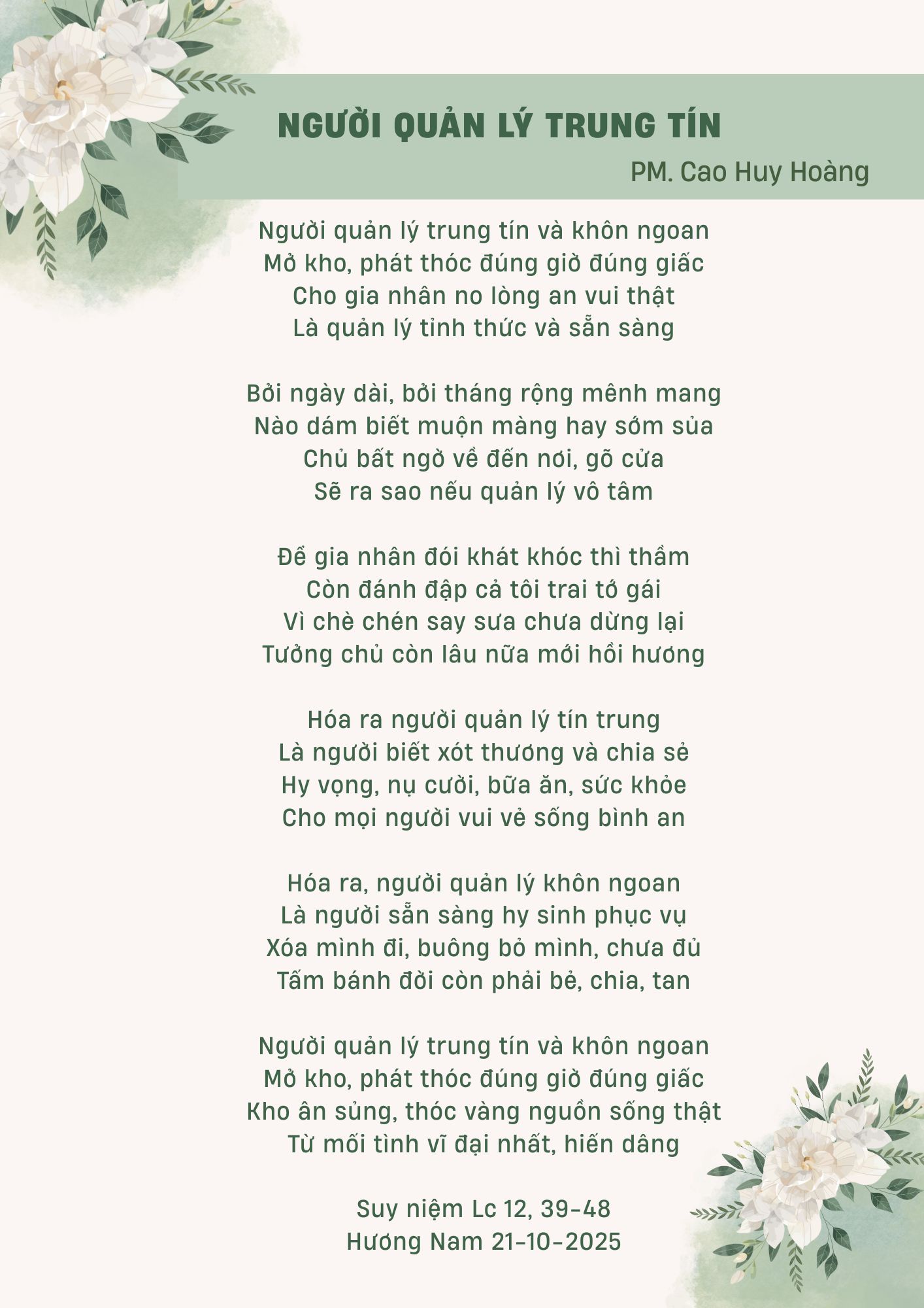 Thơ: Người Quản Lý Trung Tín - Tác giả: PM. Cao Huy Hoàng