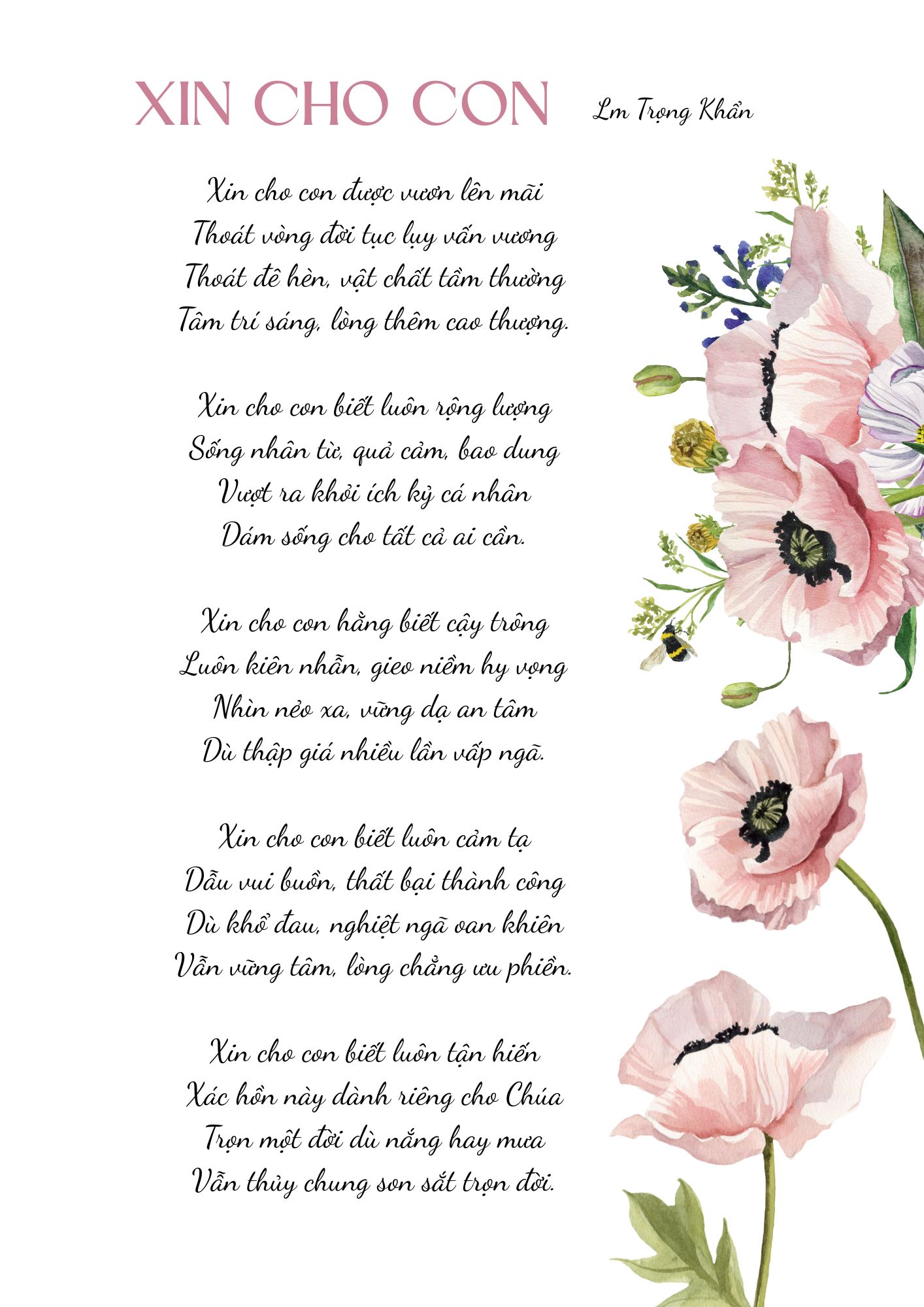 Thơ: Xin Cho Con – Tác giả: Lm Trọng Khẩn