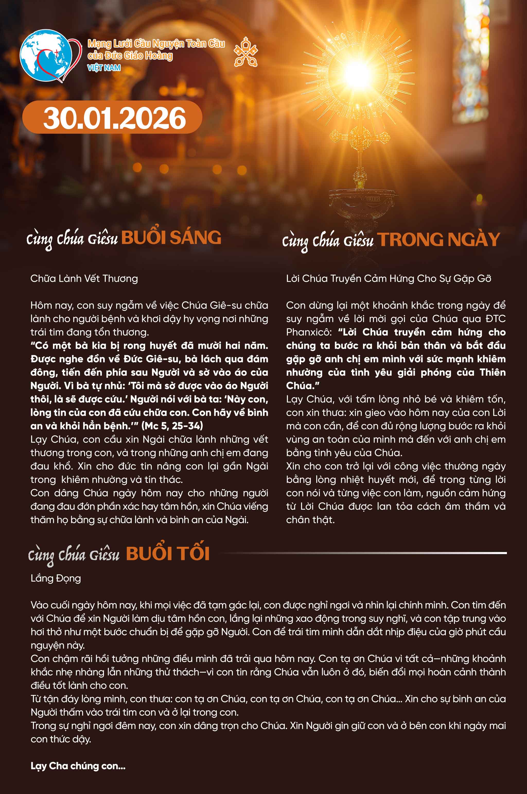 Tông Đồ Cầu Nguyện, Ngày 30/01/2026