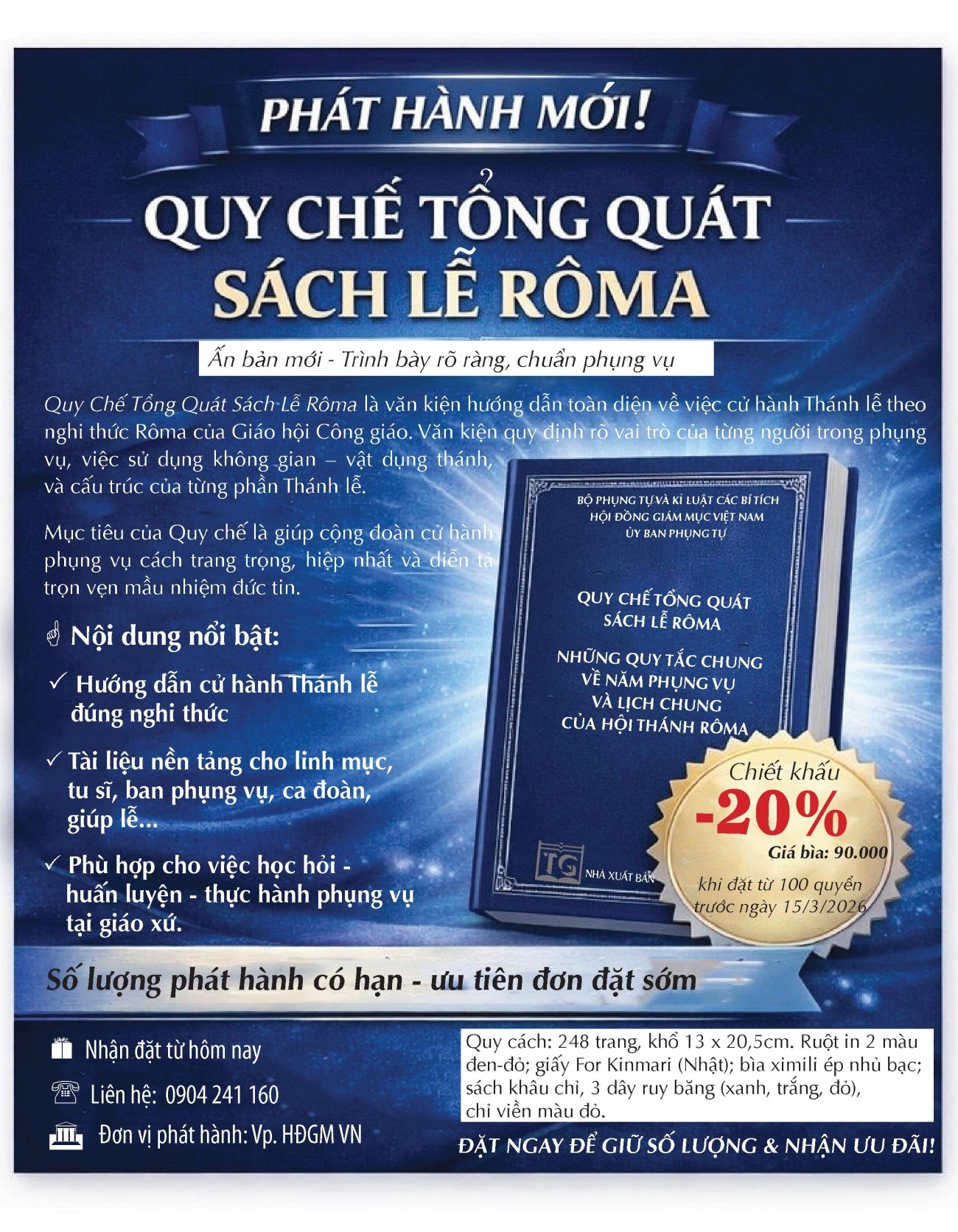 Số điện thoại liên hệ: 0904 241160 (Lễ tân Văn phòng HĐGM)